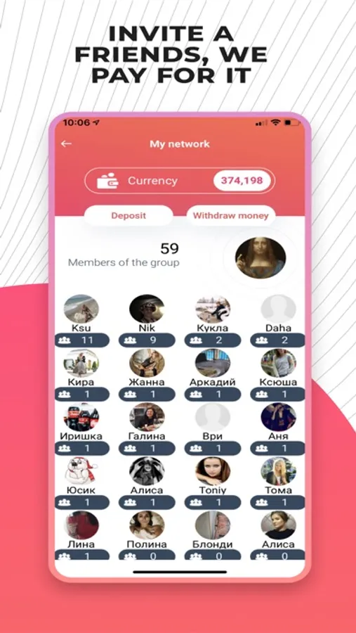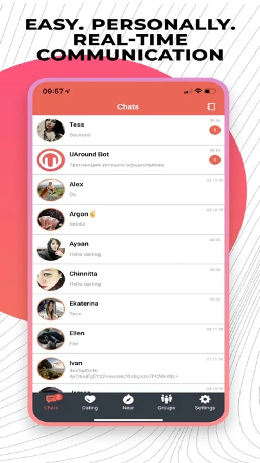 We combined 5 applications in one: the full functionality of the messenger, the most popular features in dating, enabled users to see who nearby, made it possible for users to create and administer their thematic group for business, created a loyalty program in which you can easily earn if you invite friends.