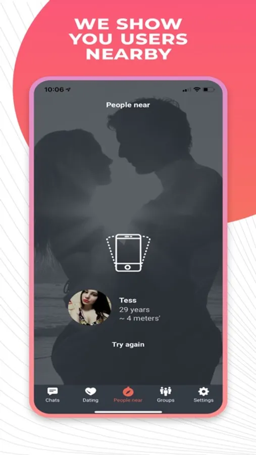 - Shake the phone, and the application will show on the screen smartphone avatars users with the name, age and distance from you;
