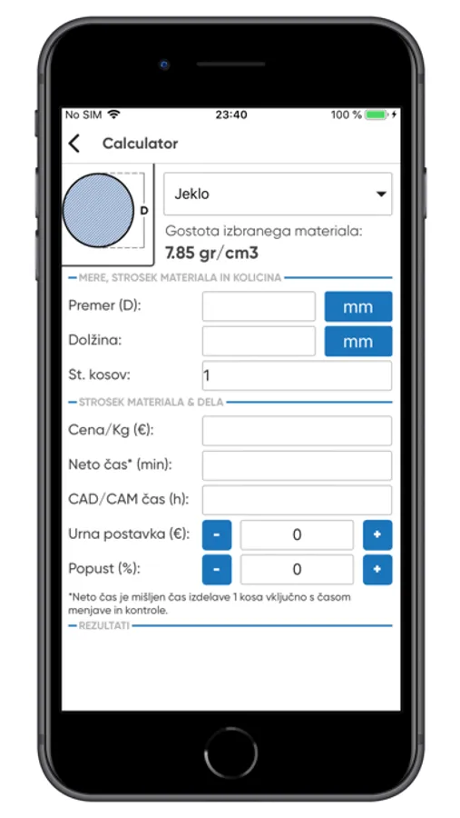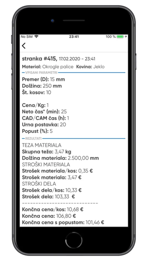 Izračunajte težo in dolžino materiala, glede na število potrebnih kosov, ter stroške izdelave