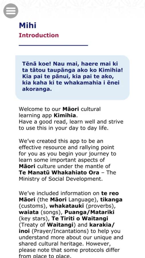 Welcome to Kimihia, the Ministry of Social Development’s cultural intelligence app.