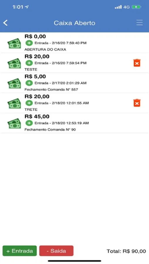 relatórios do movimento do caixa.
