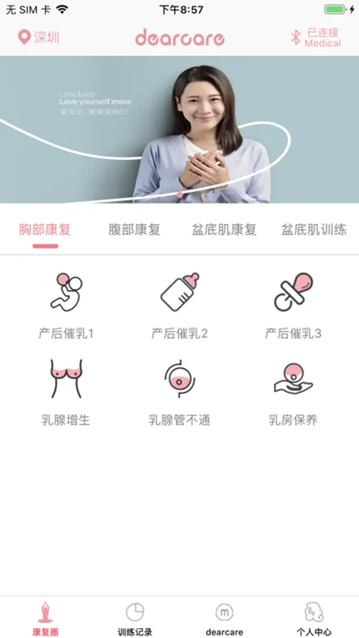 Dearcare鼓励母乳喂养、自然分娩;预防胜于治疗,提倡纯物理治疗;倡导科学、自主、阶段性的完成产后康复和盆底康复;人性化的产后健康管理,让您健康活力如初,尽早成功康复,成就现代女性终身魅力。