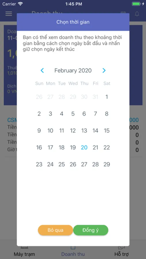 - Doanh thu trong ngày, doanh thu theo khoảng thời gian