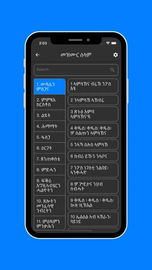 Mezmur Selam lets you read Eritrean Lutheran Church bible verses & plays audio for over 100 songs.
