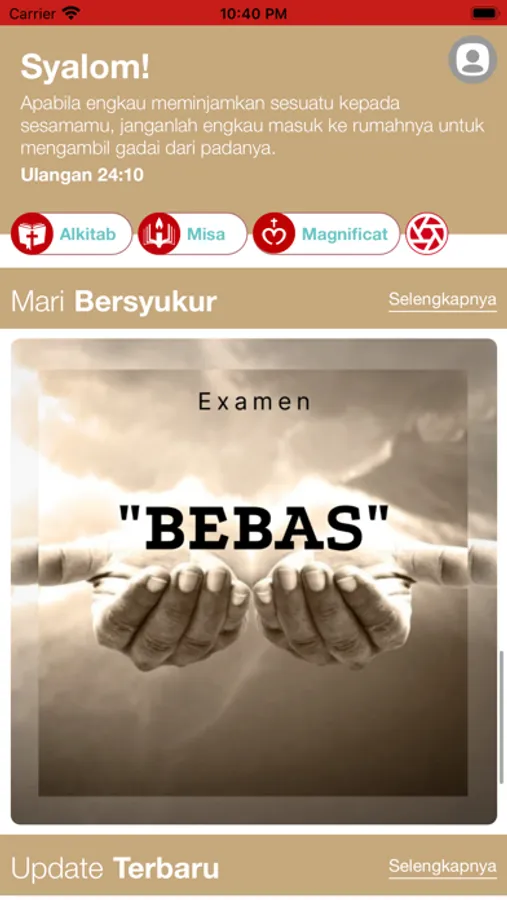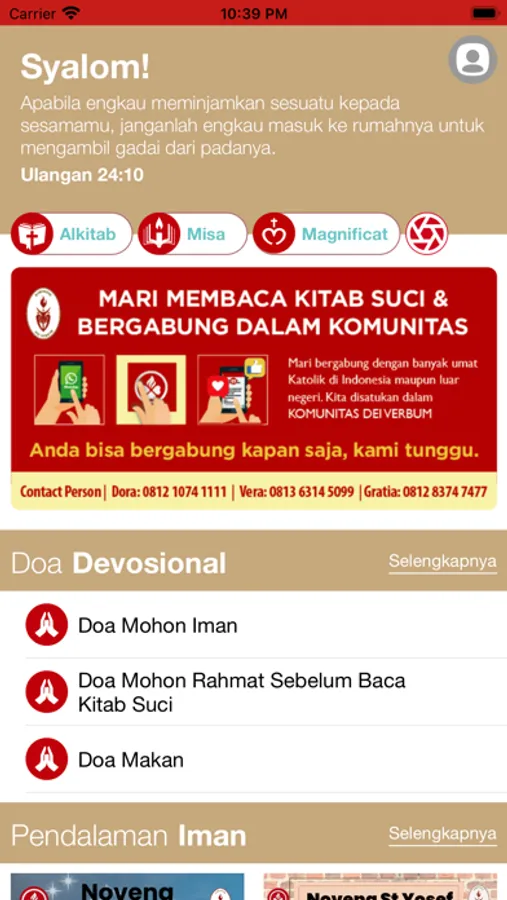 Ada banyak menu dalam aplikasi ini. Marilah kita bertumbuh sebagai persekutuan umat Allah dengan menimba kekayaan rohani Gereja.