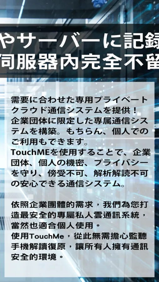 文字訊息,語音通話,視訊通話均以加密進行傳送,手機端完全沒有資料紀錄,實現安全的無痕通訊。