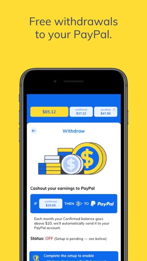 Free withdrawals to PayPal > Your earnings are automatically paid to your PayPal account monthly, while your balance is above $20.