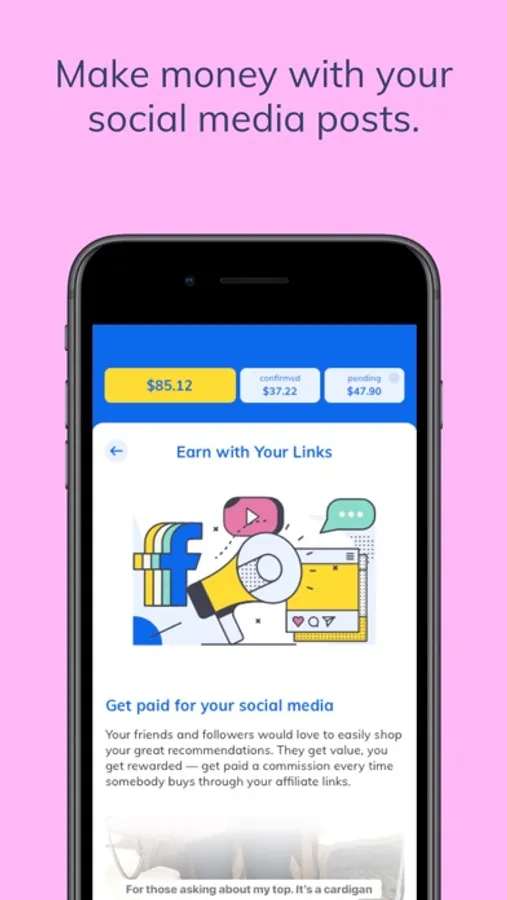 Monetize your social media > Get paid a commission for every sale through your affiliate links. Your friends and followers would love to easily shop your recommendations.