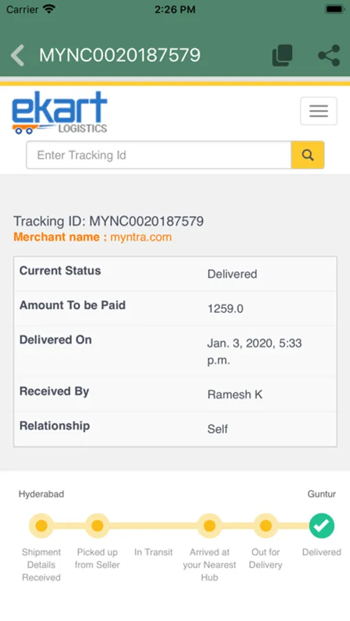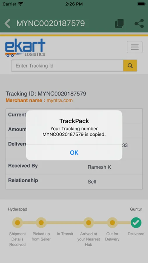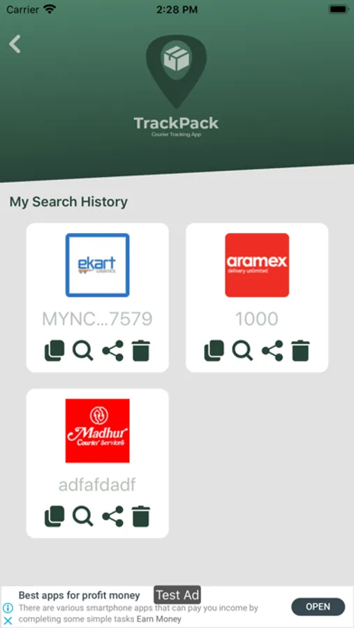 After tracking your parcel you can view tracking history in left menu which is automatically saved. (second time:- not need to write tacking number for tacking)