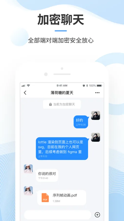 【通信加密】采用端到端的公钥加密方案,通信协议采用高强度加密算法,保证通信安全。