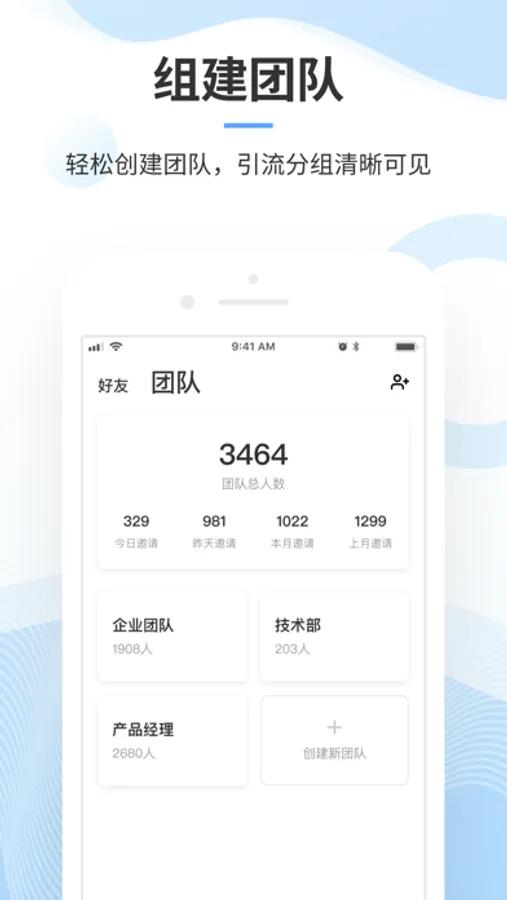 【团队分享】轻松打造个人粉丝团队,用户注册成功以后自动进入对应的团队,便于企业管理。