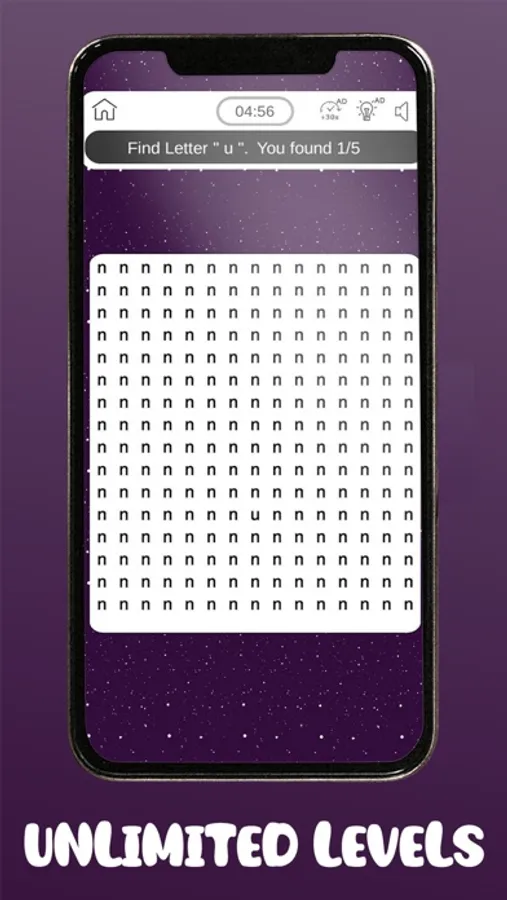 Find The Letter is a Puzzle game. The gameplay is very simple: Just find words showing on screen in the limited time given. Sounds easy right? If so try it to see how easy it is :) Only 10% can finish on time all time.