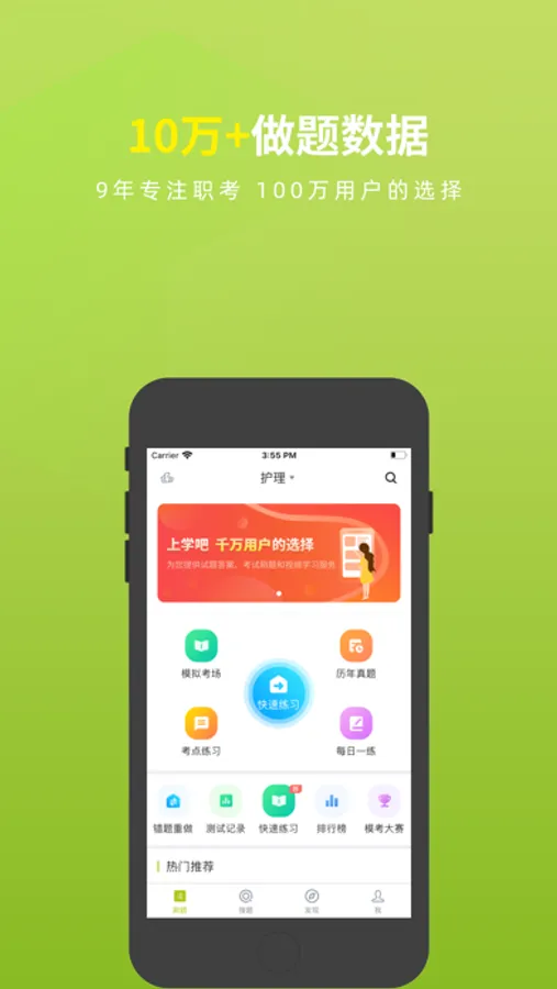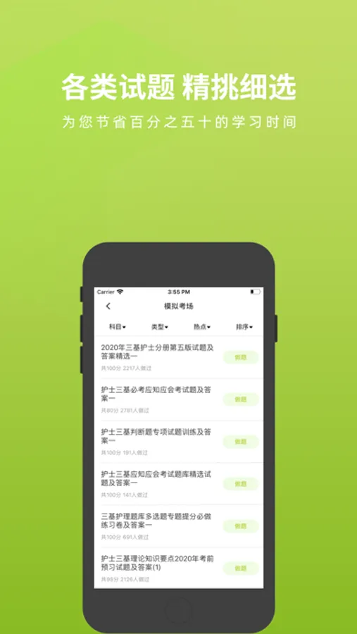 护理三基APP有模拟考场、历年真题练习、快速练习、考点练习、做题记录等多种学习与做题模式、丰富多样化的陪你一起考护理三基考试。