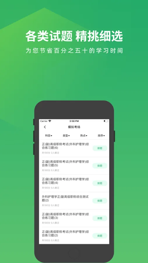 外科护理正副高题库APP是一个针对外科护理正(副)高职称考试的题库,涵盖了该考试热点、难点和常考点的考试模拟题库,是您学习和拿高分的好帮手。