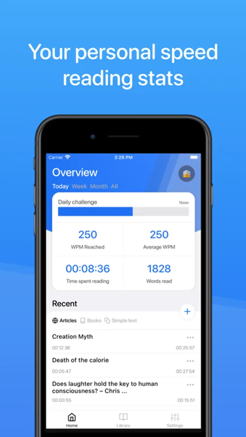 * Focus – Spry Reader is designed to give you a distraction free speed reading experience so that you can complete your daily reading much faster.
