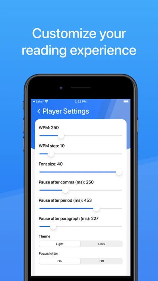 * Stay Inspired - Our detailed statistics and ranking system give you the insight and motivation you need to keep leveling up your speed reading skill.