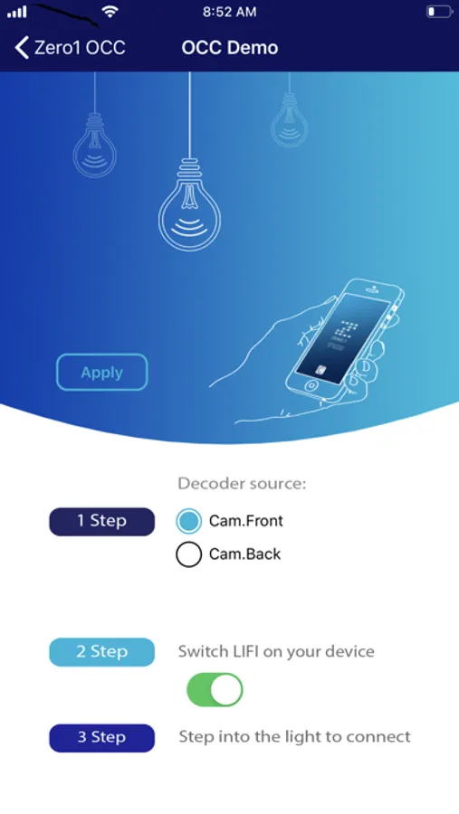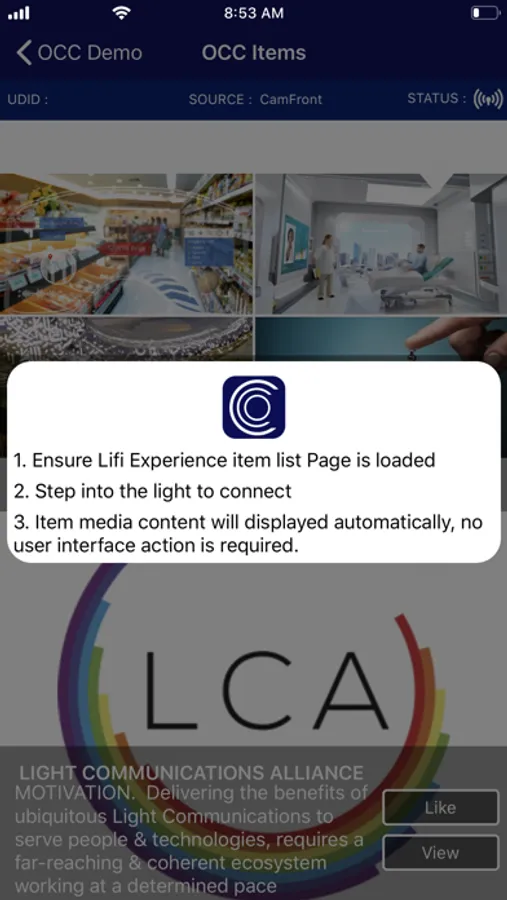This authorization is essential in the case of a technology demo and for our customers. Your camera will receive the signal from each of the OCC lamps placed in the appropriate place on your route and will allow you to receive information; to locate you and find a route