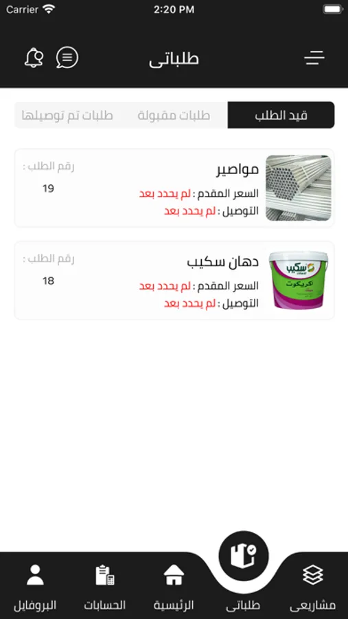 تطبيق موردين يساعد على التواصل بين العملاء والموردين لتسهيل عملية توريد مواد ولوازم البناء وإمكانية تقديم عروض الأسعار والتواصل بين الأفراد والمؤسسات