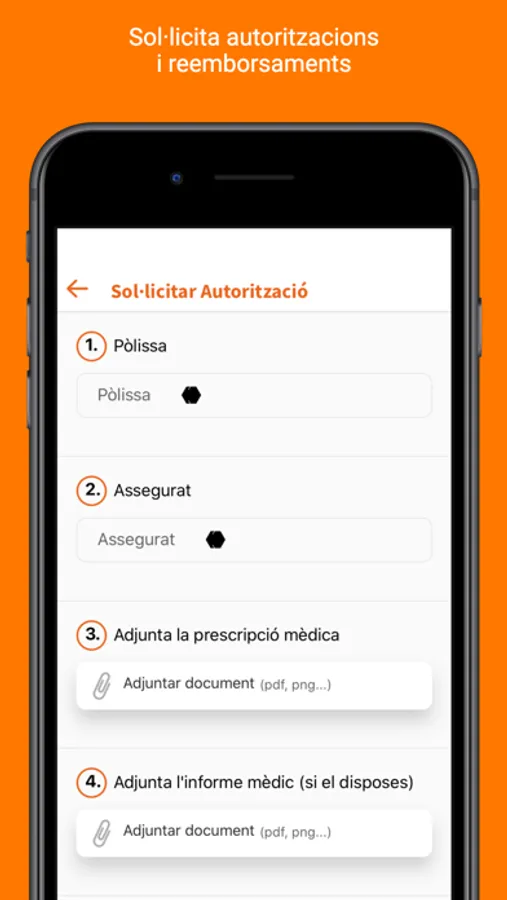 Podràs sol·licitar una autorització mèdica per a realitzar determinades proves diagnòstiques, intervencions o hospitalitzacions, mitjançant l’enviament en format pdf, jpg,... de la prescripció mèdica. Així mateix també podràs consultar en qualsevol moment l’estat de les teves sol·licituds.