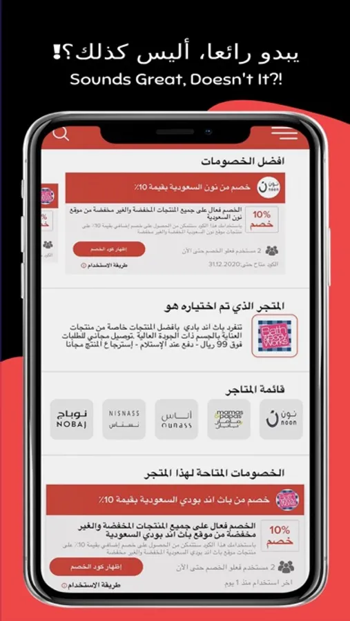 جميع الكوبنات والعروض واكواد الخصم بداخل التطبيق تم التأكد منها وتجربتها .