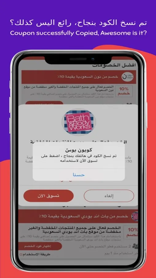 ستجد في داخل التطبيق كوبونات واكواد خصم يتم تحديثها وفحصها بإستمرار للتأكد من صحتها من خلال هذة الكوبونات واكواد الخصم ستحصل على خصومات تصل الى 70% .