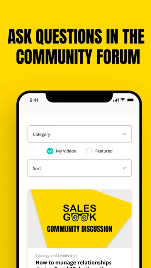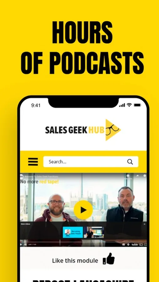 The Sales Geek App allows you to watch sales training videos and listen to the latest podcasts.
