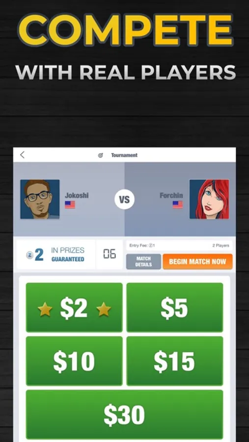 Win matches and redeems your real cash via PayPal or Bank Account!