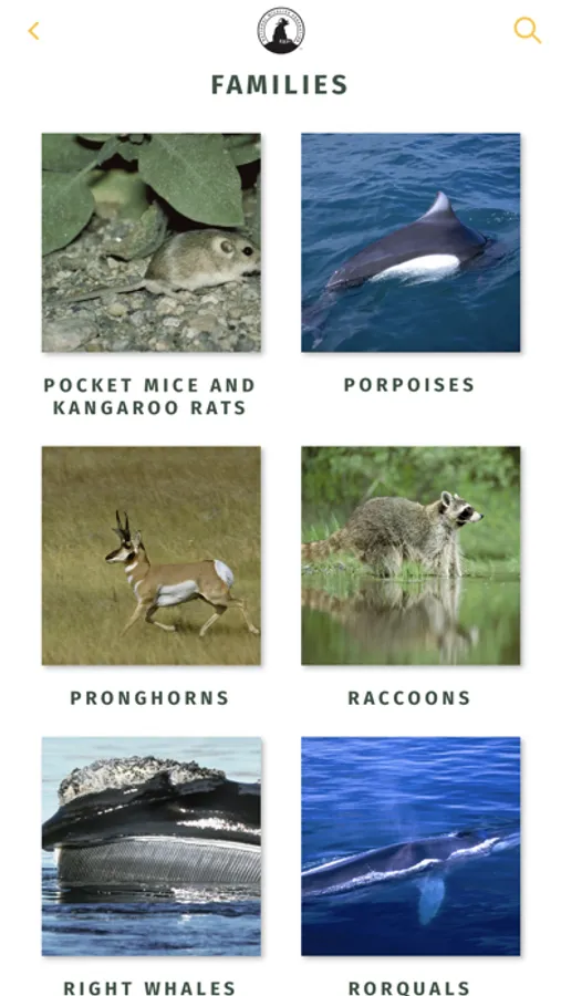 • Search by name (common and scientific) using either keyboard or verbal search systems; type or speak all or part of a mammal’s name to search for its detailed account.
