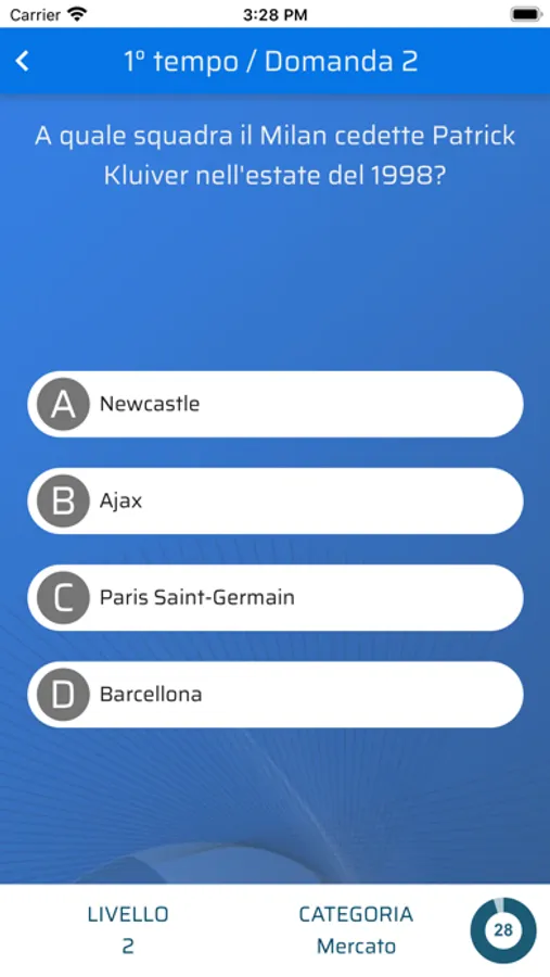 1900 domande preparate con cura e divise in 5 categorie: Serie A, Mercato, Trofei (Champions League, Europa League, Pallone d’oro, ecc), Calcio Estero (Premier League, Liga, Bundes, ecc.) e Nazionali (Mondiali, Europei, Copa America, ecc): oltre.