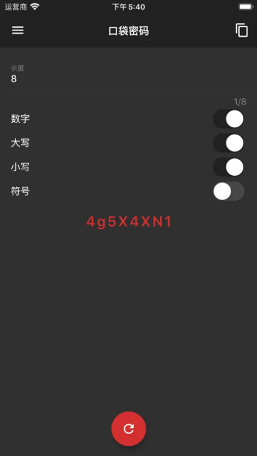 一款安全密码生成APP,可以使用字母、数字、符号的组合来生成高强度密码,可以拷贝密码到粘贴板,支持暗黑模式,支持iPad。