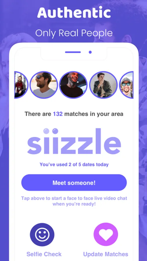 Siizzle is a dating app with a twist. It connects you to nearby singles without the distraction of filters, staged photos, or bots. In Siizzle, you are placed into 60-second live video dates with hand-picked matches. Make a connection in those 60 seconds by hitting the Siizzle Button. If you and your date both hit Siizzle you and your date can instantaneously schedule your first meet-up in our Siizzle messenger. It’s as simple as that.