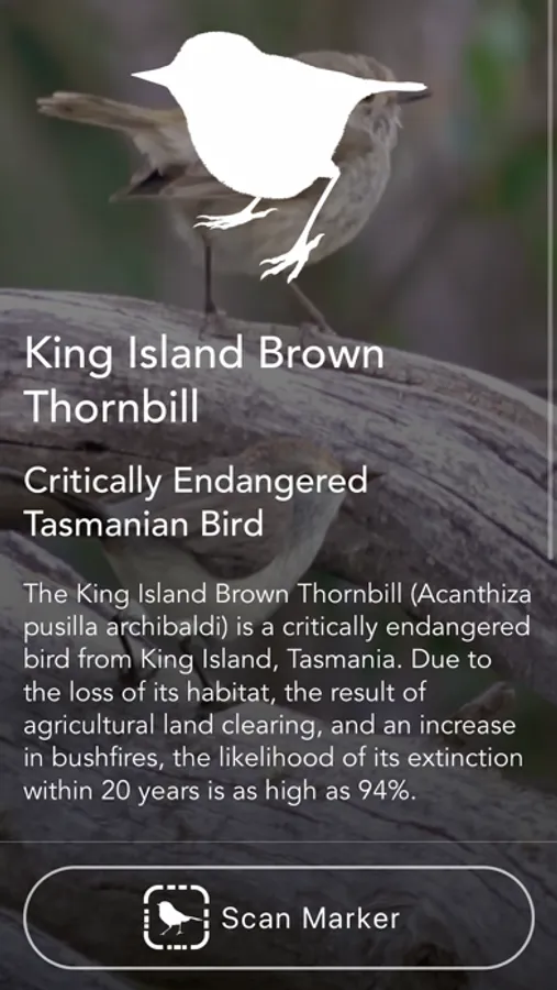 An animated rendering of a King Island Brown Thornbill (Acanthiza pusilla archibaldi), a critically endangered bird from King Island, Tasmania, to interact with a sculpture of a diagram patented by Amazon illustrating a cage for a human worker.