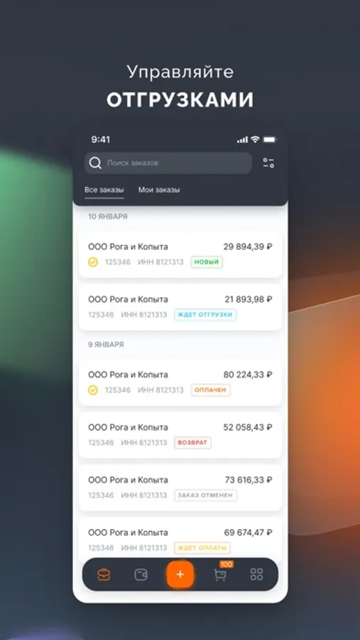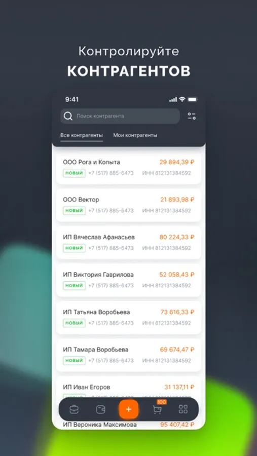 Создавайте или изменяйте документы отгрузки со склада. Поиск, изменение или добавление нового контрагента.