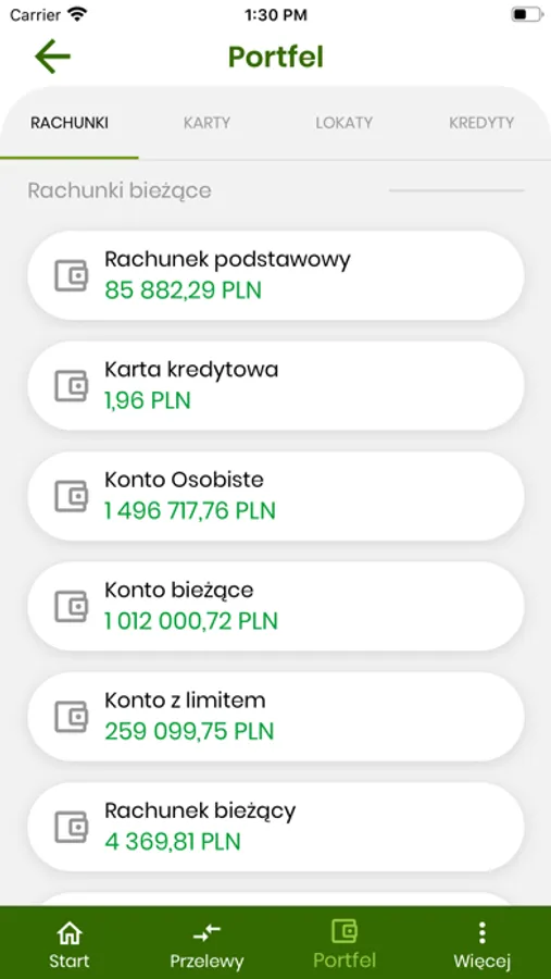 - prezentowanie rachunków, kart, lokat i kredytów klienta,