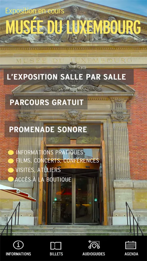You'll be notified about coming exhibition organised by the Musée du Luxembourg directly in the application, as well as fairs and events organised.