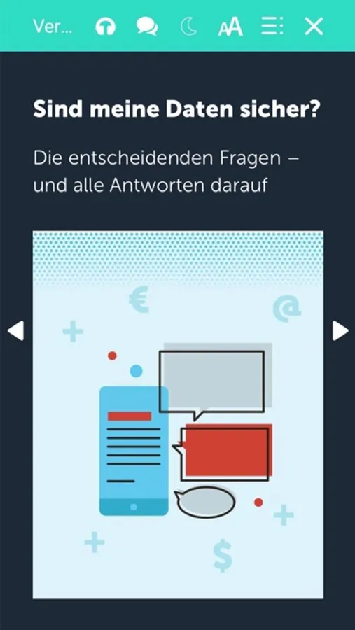 -Vorlesefunktion mit Sprachwahl und fünf Vorlese-Geschwindigkeiten