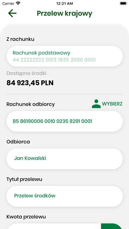 - wykonywanie przelewów krajowych, własnych i doładowań telefonów,