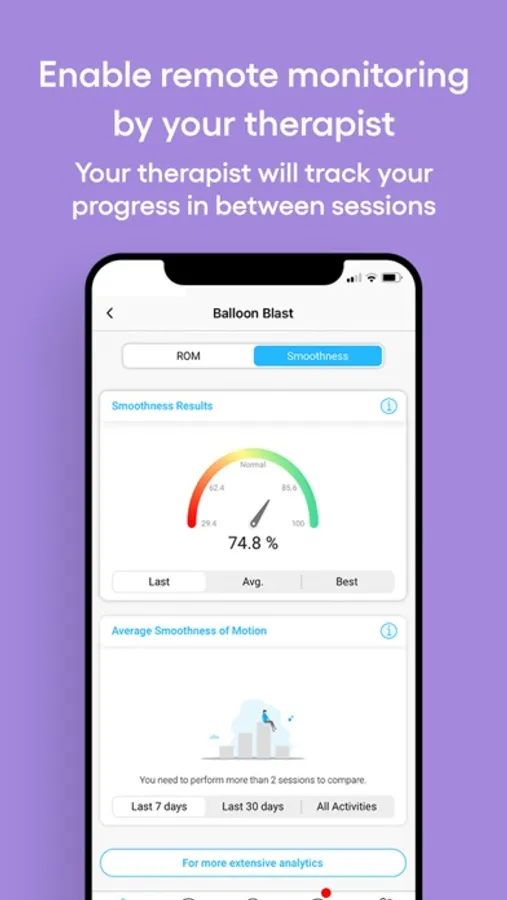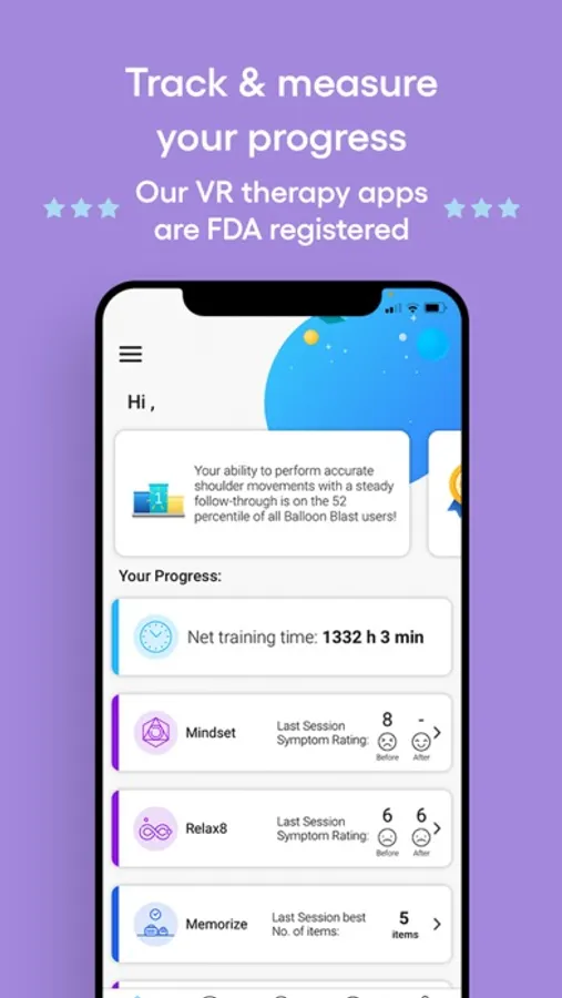 The mobile app helps you track your progress and results, and to follow your digital training plan. The app includes CliniChat, an easy and secure messaging feature for you to stay connected to your XRHealth therapist during your treatment plan.