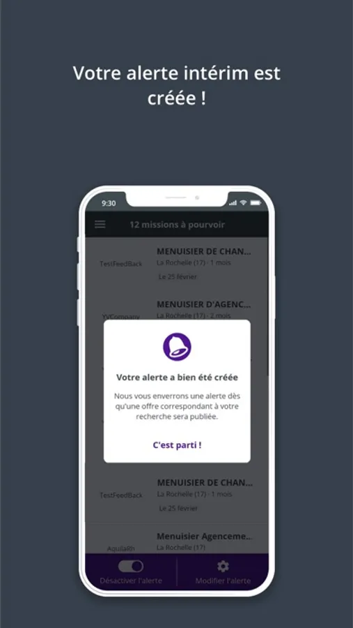 Dès la publication d’une nouvelle offre d’emploi correspondant à votre recherche, l’application vous