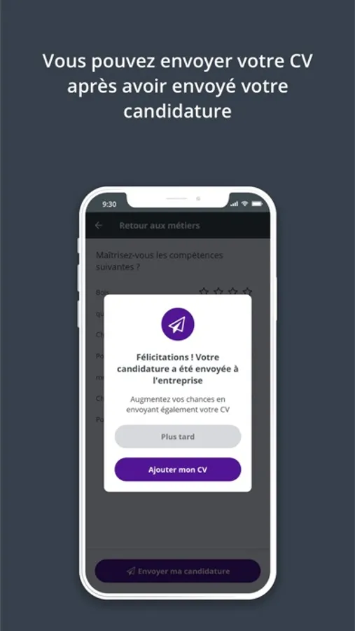 Pour postuler, il vous suffit de répondre à une courte série de questions. Le CV n’est pas obligatoire.