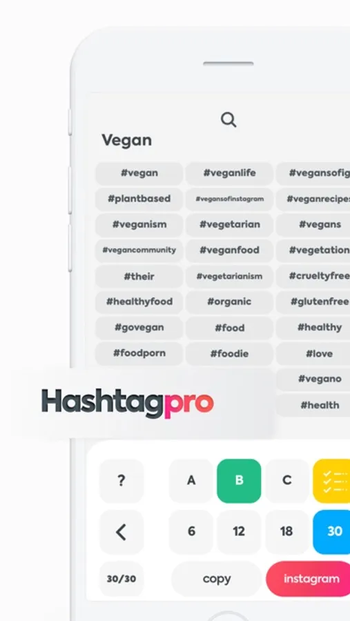 Hashtag Pro generates more than 40 Hashtags from multi sources with a single keyword and suggests 3 different hashtag groups to choose from . Users can create their custom hashtag group with selecting hashtags from all generated hashtags aswell.