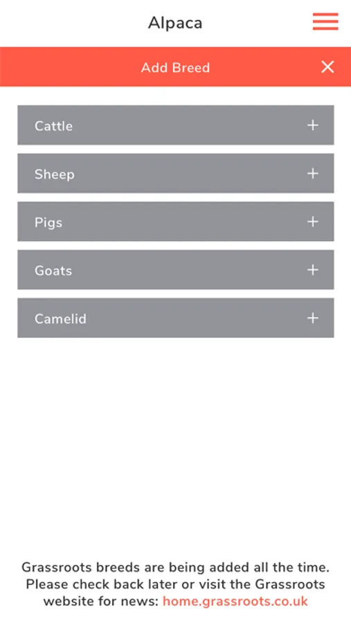 The Grassroots App enables pedigree livestock farmers to access and manage the pedigree information about their animals. Over 130 pedigrees breed societies working with sheep, cattle, pigs goats and alpacas use the Grassroots system. The App gives farmers immediate access to their own animal data. This will link pedigree, offspring, show results, images and management notes and enabling them to report births, deaths, sales and changes, direct to the relevant breed society.