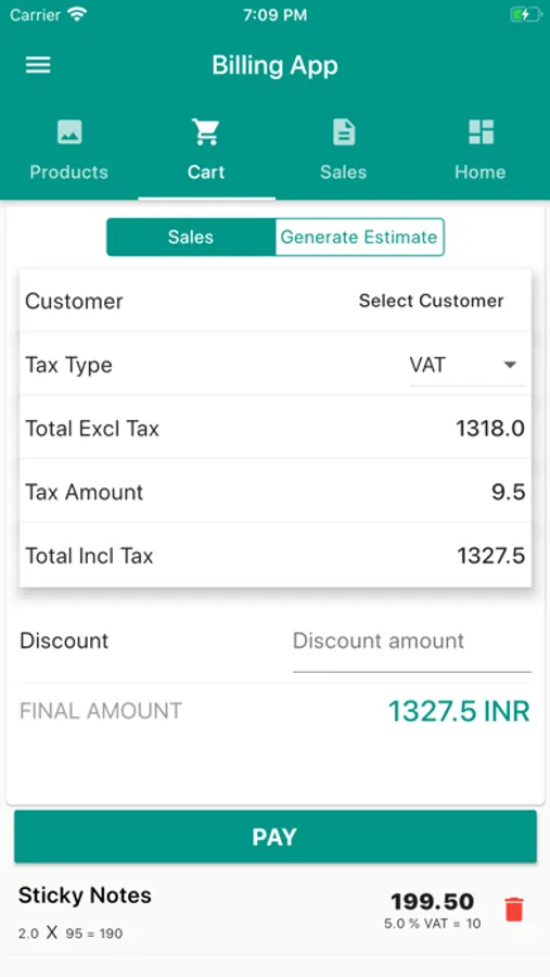 => generate Estimate or Invoice then Send to your customers (e.g: WhatsApp,Email) as PDF and Print from Billing App.