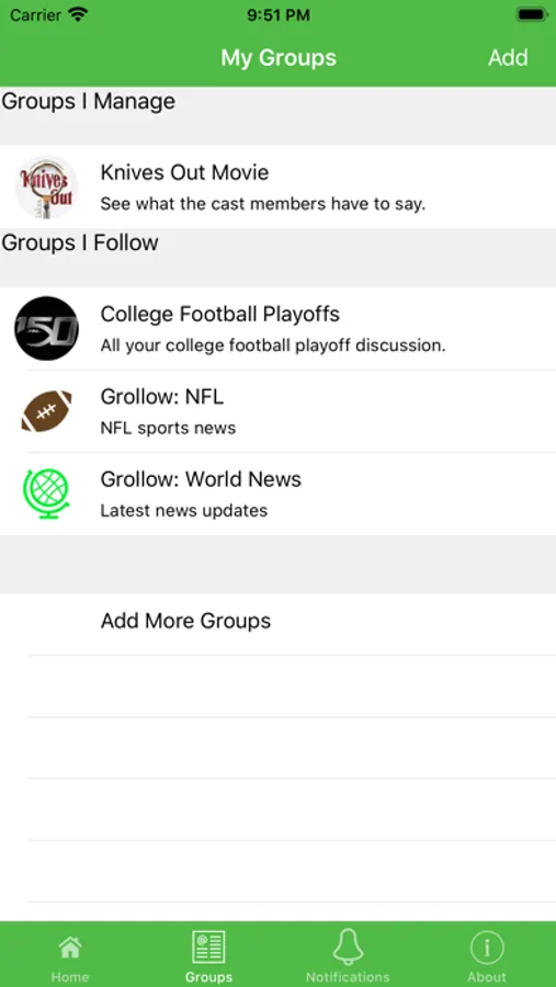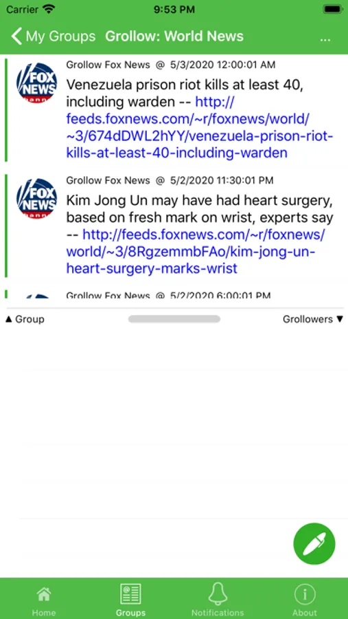Grollow will allow group texts to be followed. The followers can be anyone and the followers will have the ability to chat with each other.