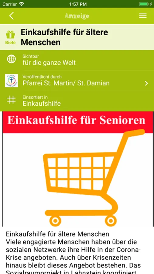 Im Bereich „Handeln“ bietet sie eine Plattform für nicht-kommerzielle Kleinanzeigen (Biete / Suche) für das soziale Miteinander bzw. nachbarschaftliche Hilfen.