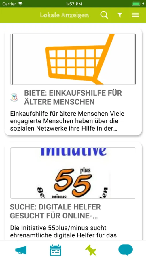 Die App bietet drei Bereiche, das Miteinander zu organisieren: gemeinsame Projekte und Veranstaltungen, regionale Kleinanzeigen und der Austausch in privaten Chatgruppen.