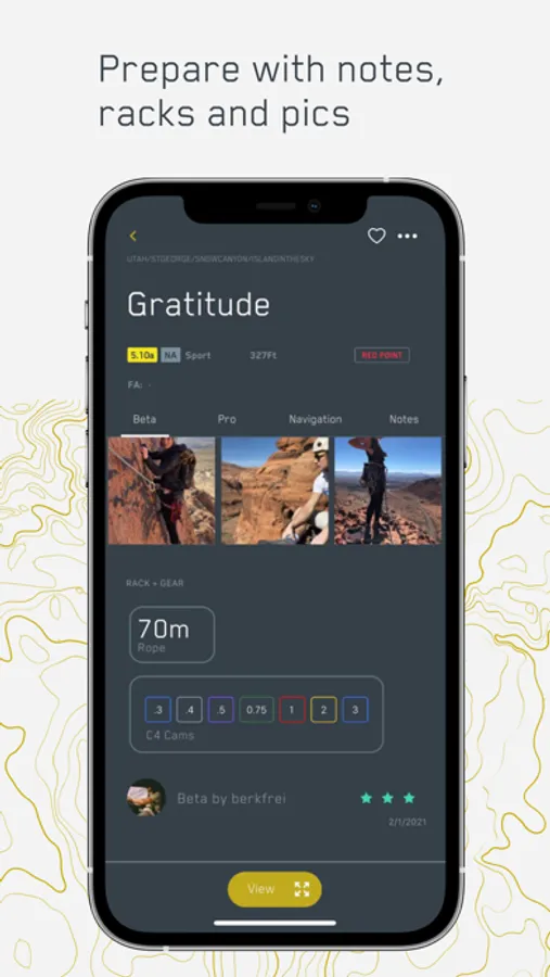 Download the app for free and start exploring our rapidly growing set of 3D crags, routes, and community notes to get stoked on new climbs, plan trips, prep gear, find climbs quickly and navigate them safely.