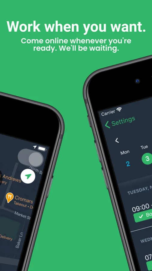 Get flexible work that fits to your schedule. Come online and accept orders whenever you like, we'll be waiting.
