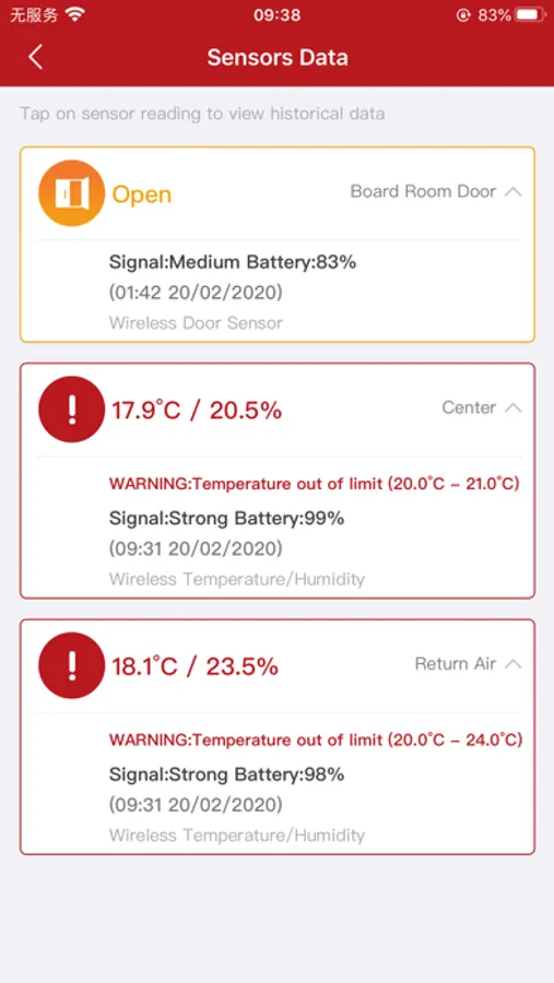 - A simple tap on the real-time reading leads you to historical sensor data charts.