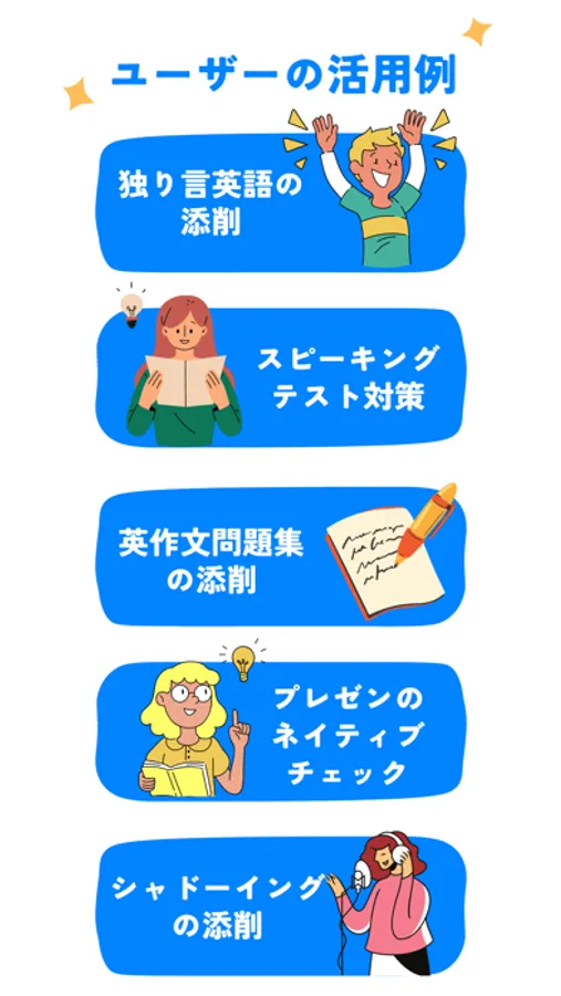 ◆英検2次・TOEIC・TOFLE・IELTSなどのスピーキングテスト対策に利用